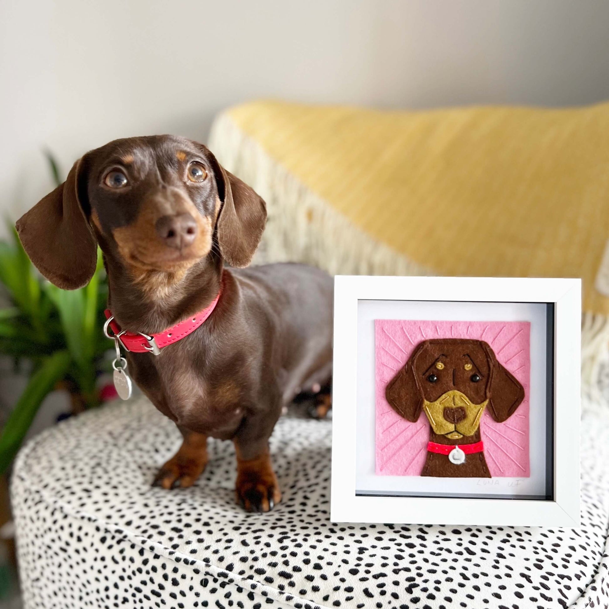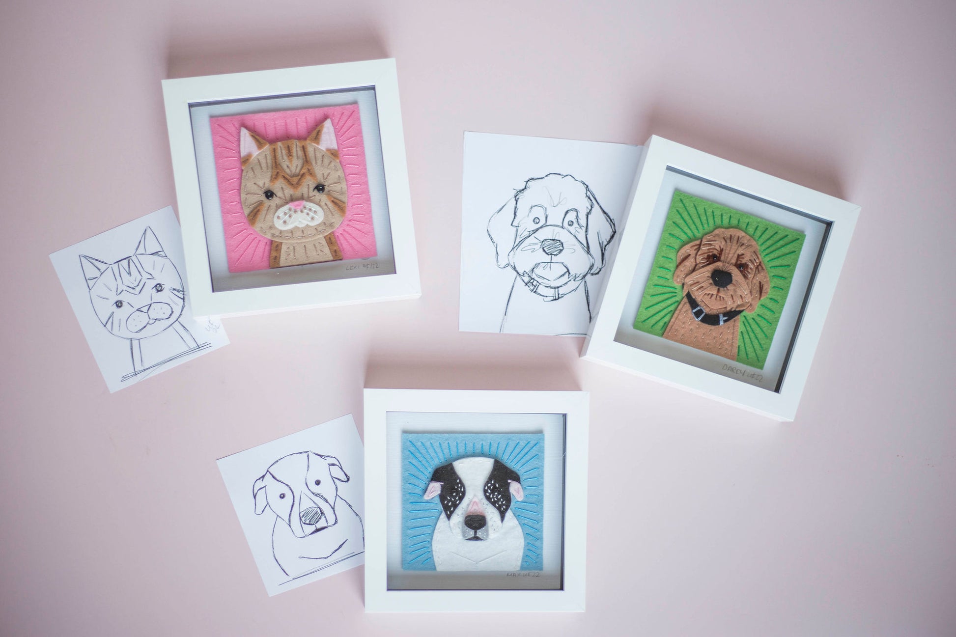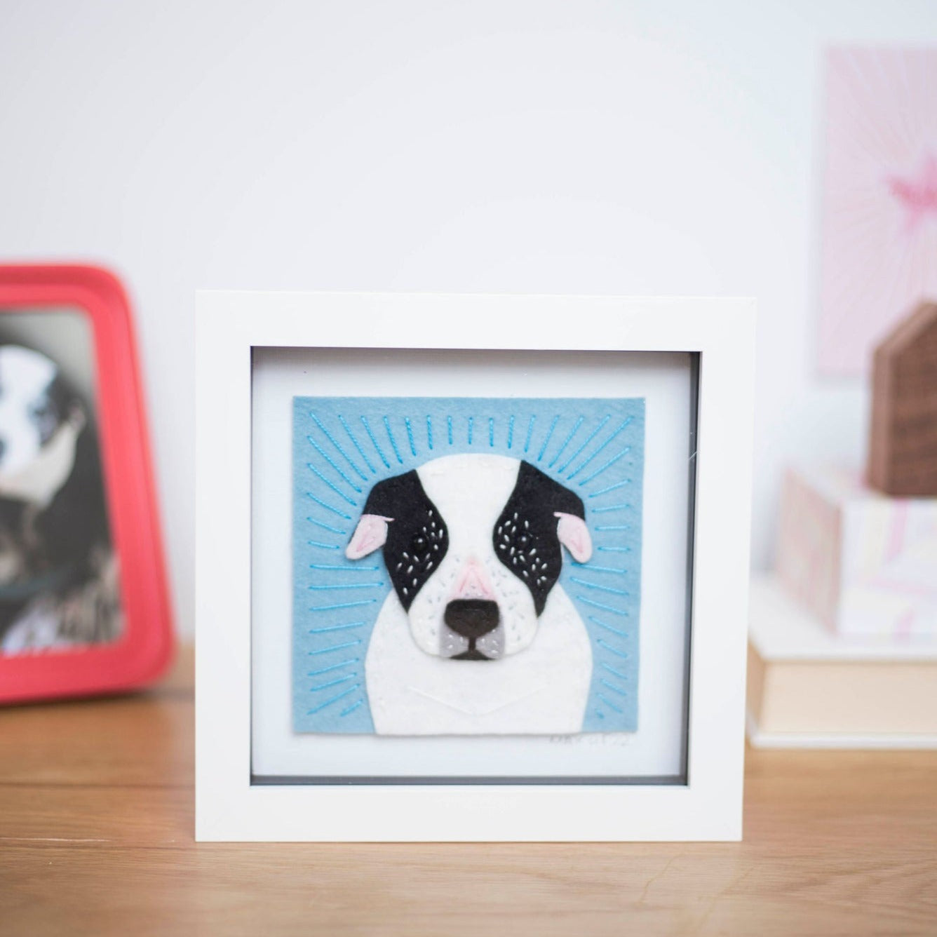 These beautiful bespoke pet portraits are hand-crafted by Miss Shelly Designs from layers of felt and hand embroidery.