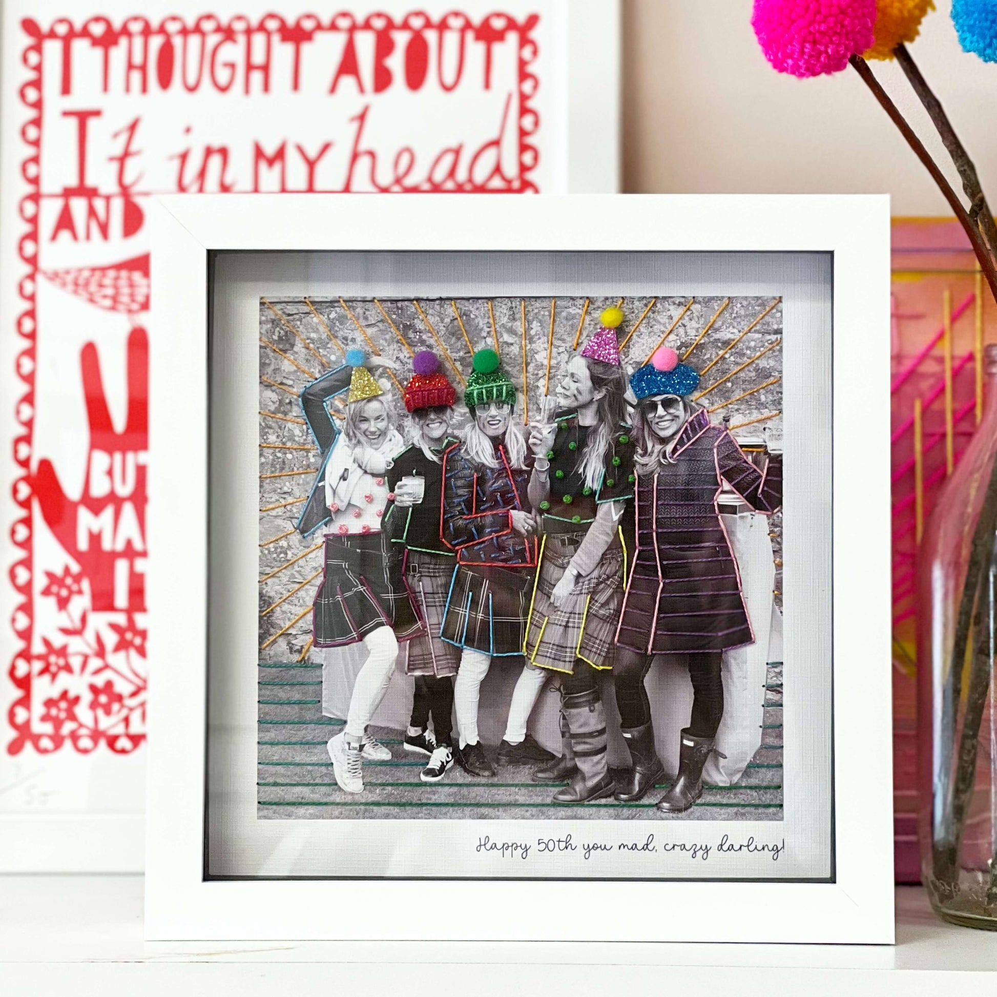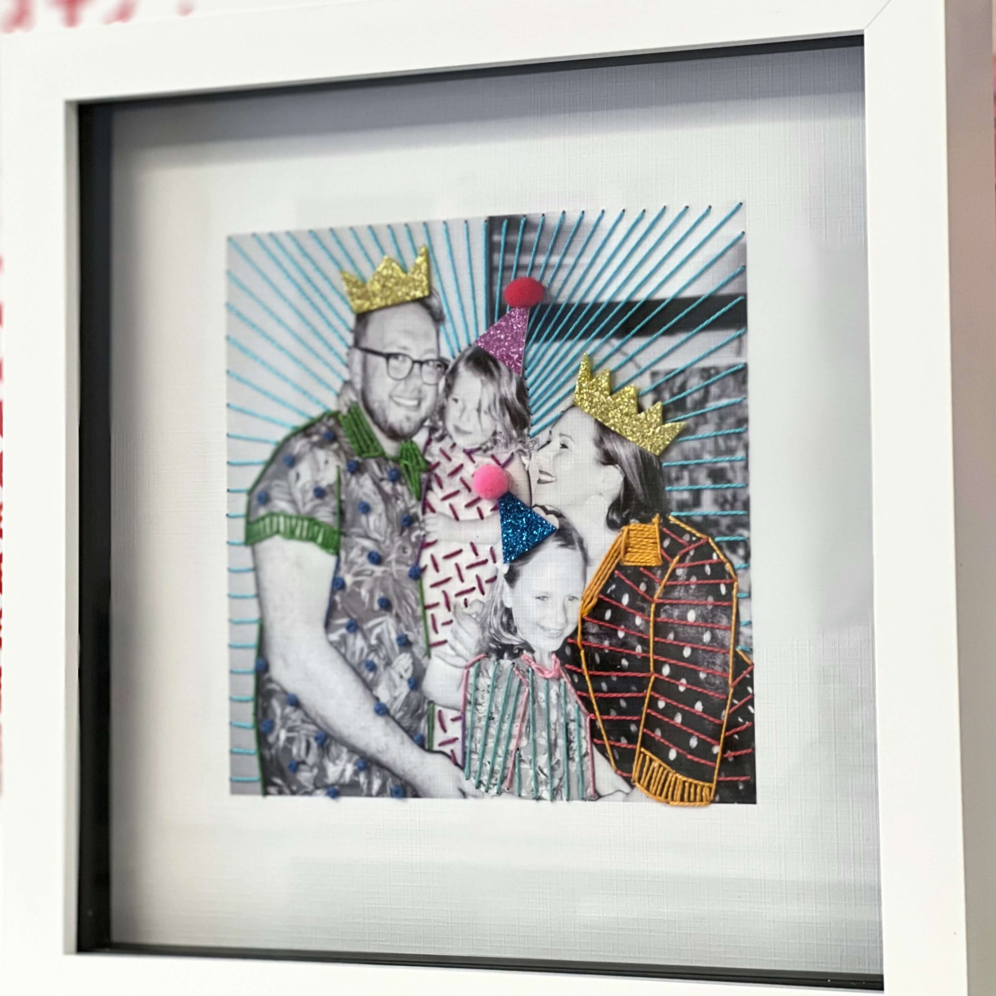 I FINALLY got one of these gorgeous embroidered photos after longing for one for years. I chose it as a gift for my mum's birthday, shortly after my granny passed away, to show the four generations of girls all together. Shelly added so much fun and colour to my photo, and my mum absolutely loved it! Thank you for helping us remember my lovely granny in such a joyful way.
