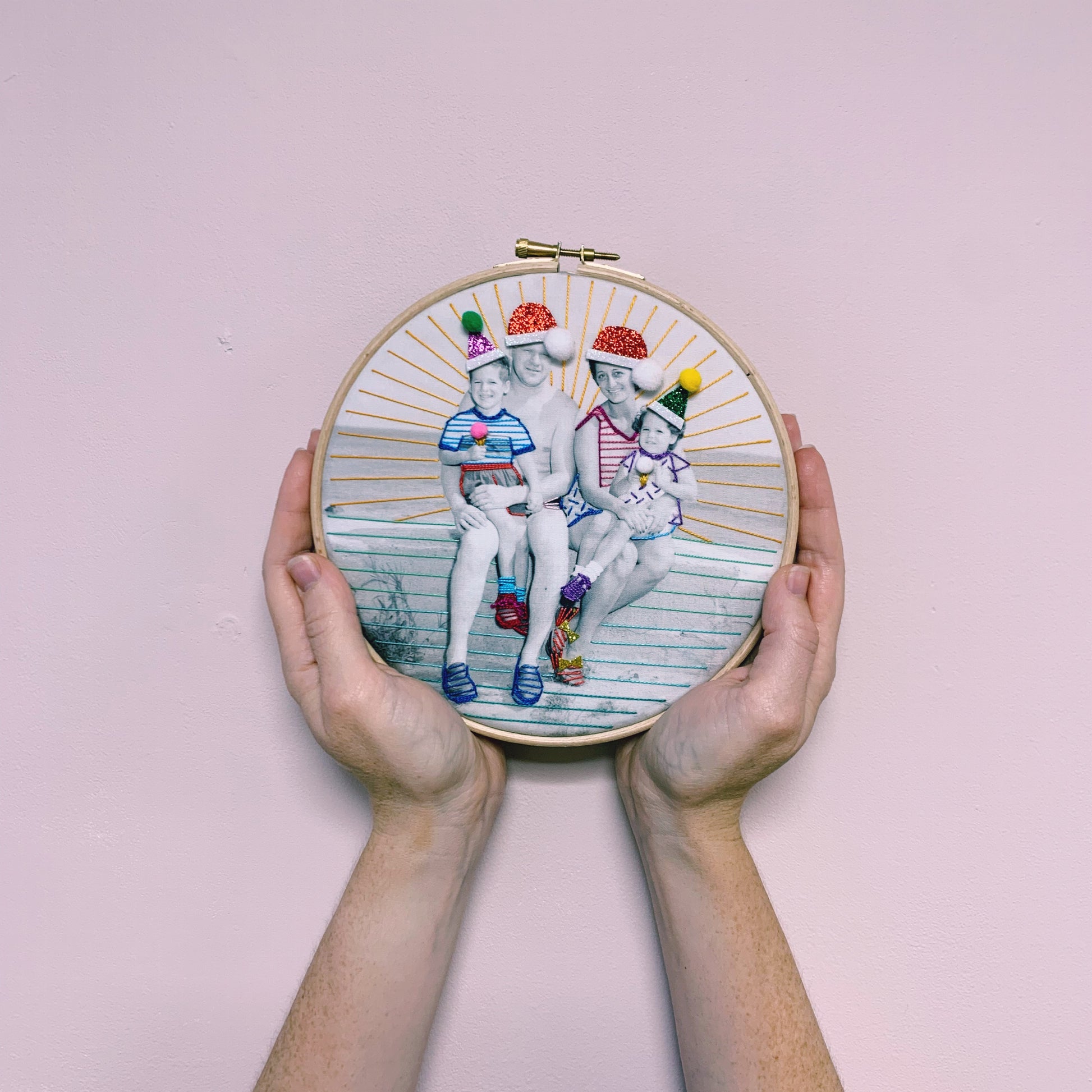 Choose a family portrait, a wedding photo or a favourite photo of a friend and Miss Shelly will add colourful embroidery and fun details to enhance those special memories.