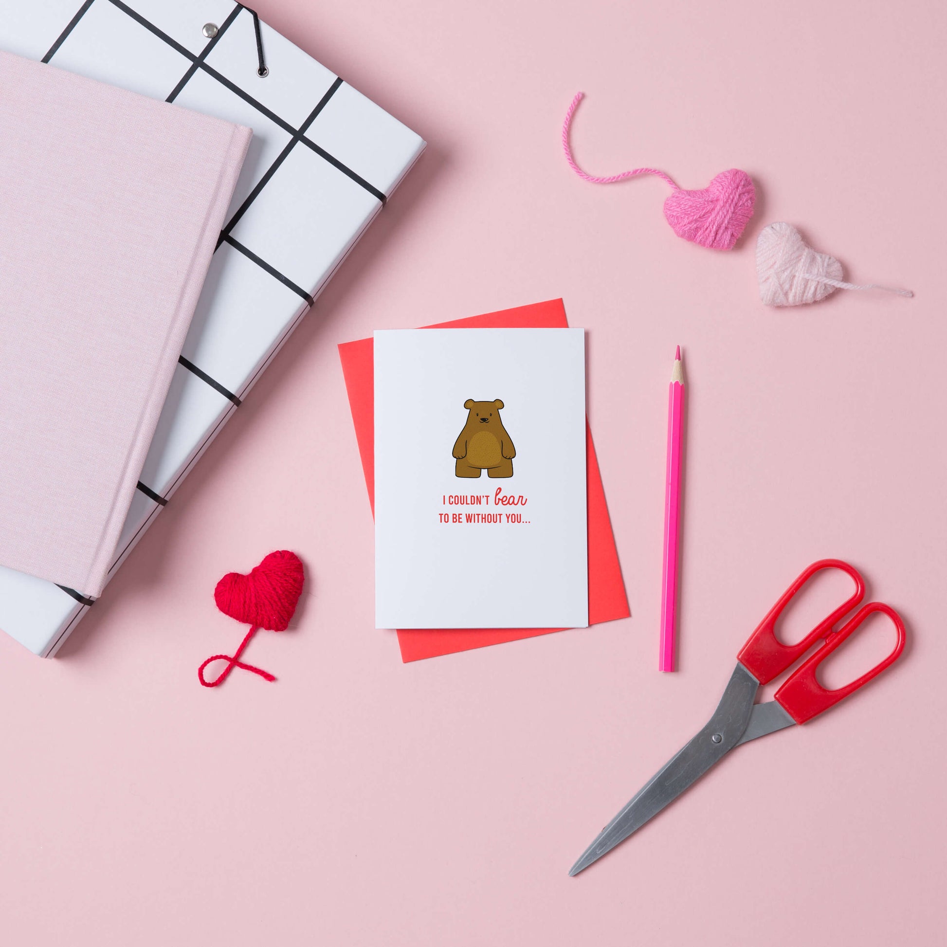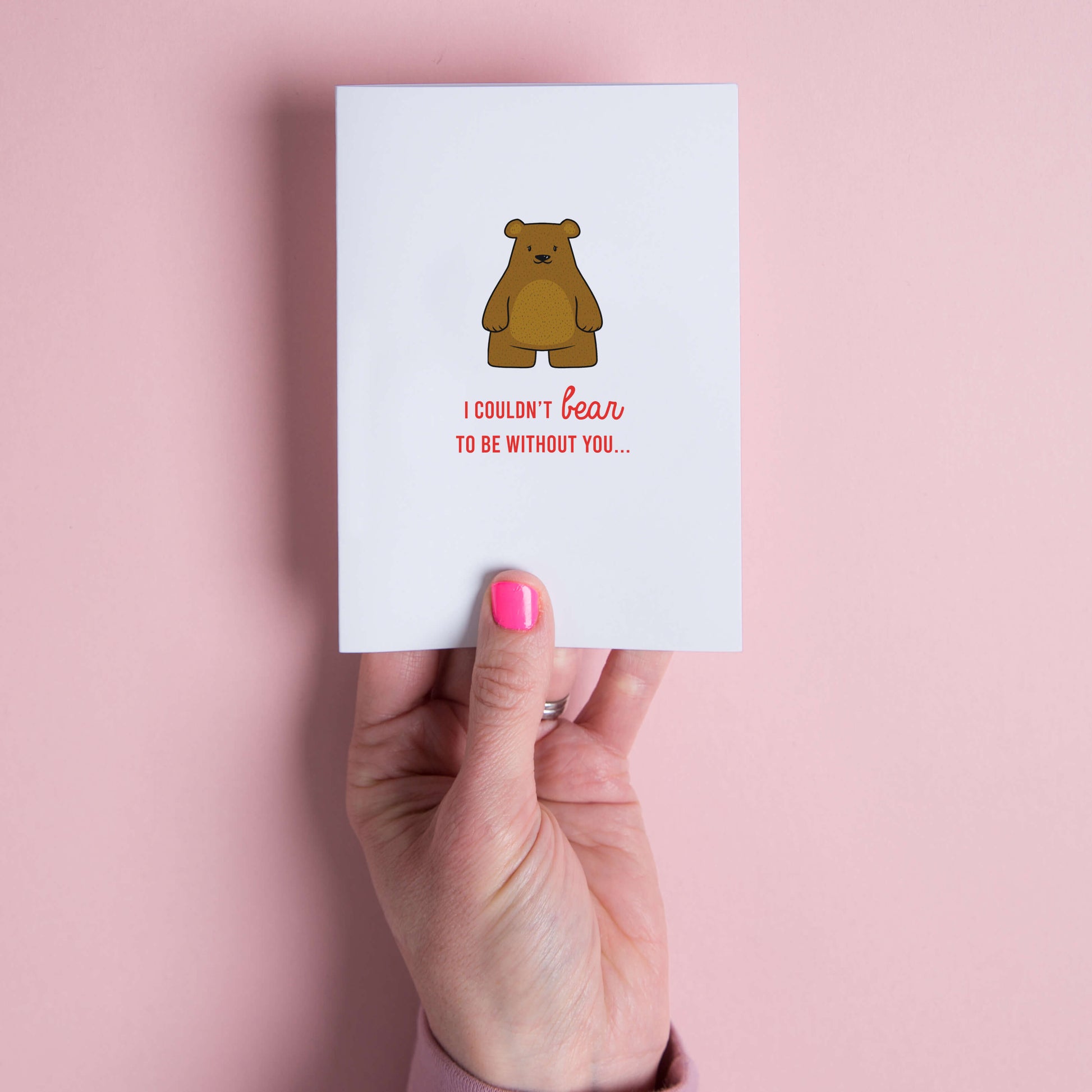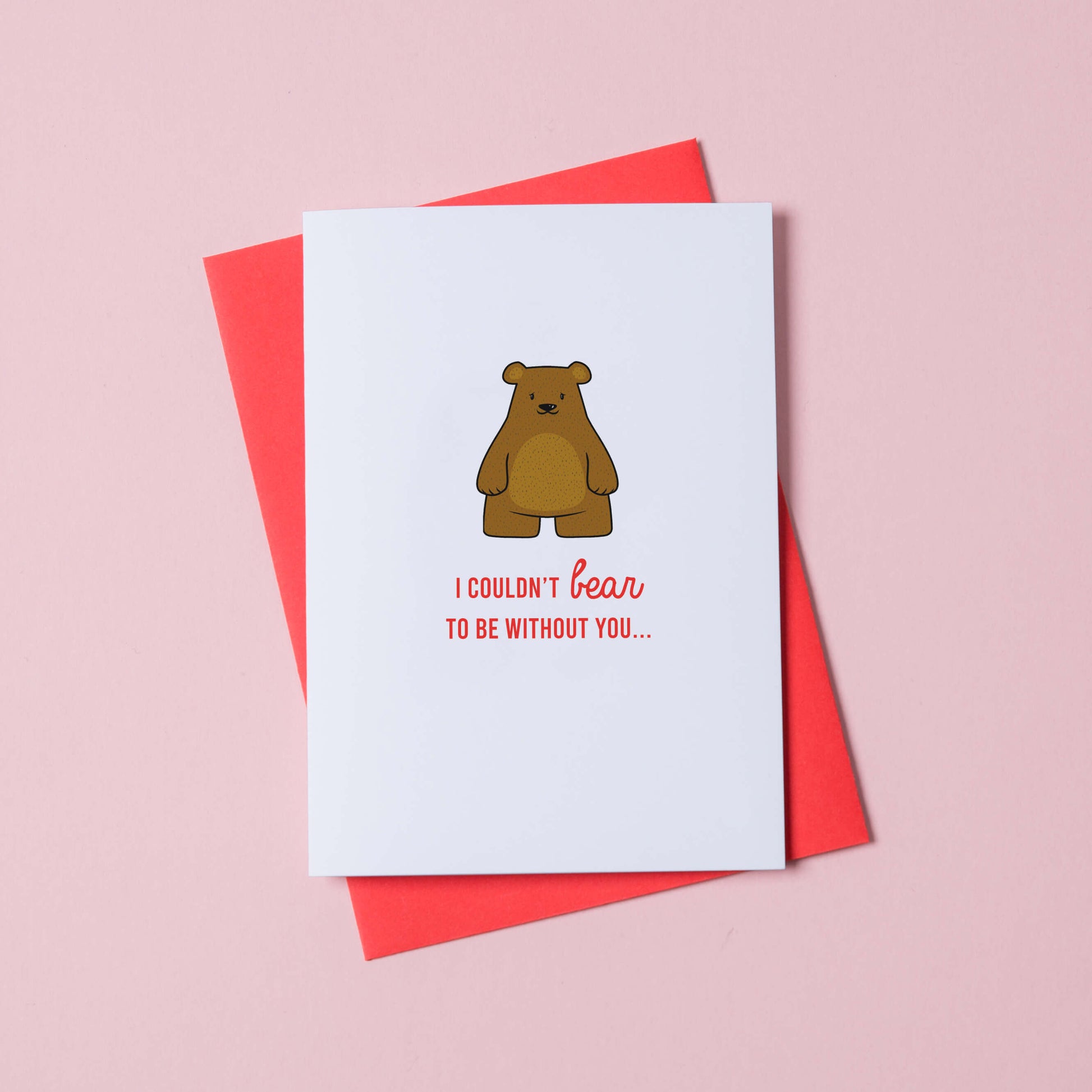 The card reads : 'I couldn't BEAR to be without you' and on top of the text stands a cute little bear.