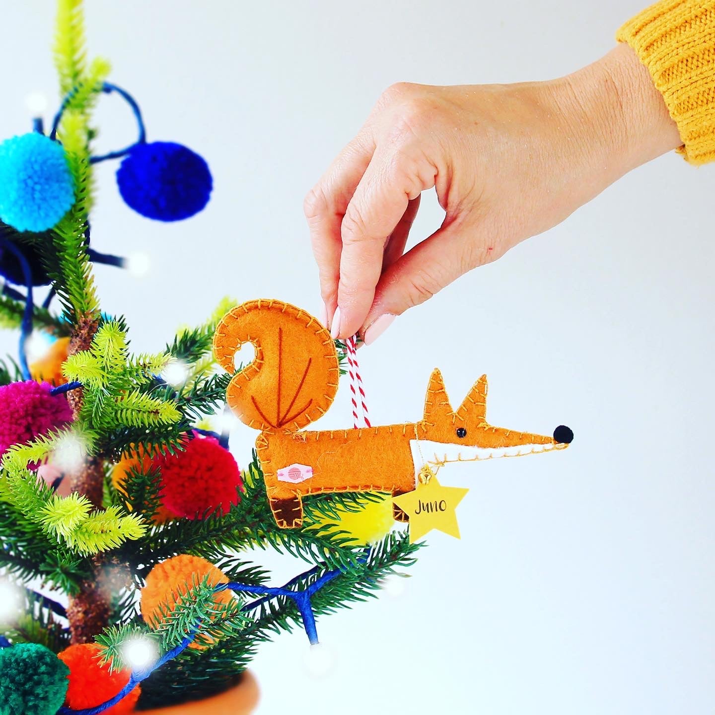 The fox decoration is part of Miss Shelly's woodland collection. He is made from felt and has lots of little details like his hand-embroidered tail and cute pom pom nose.